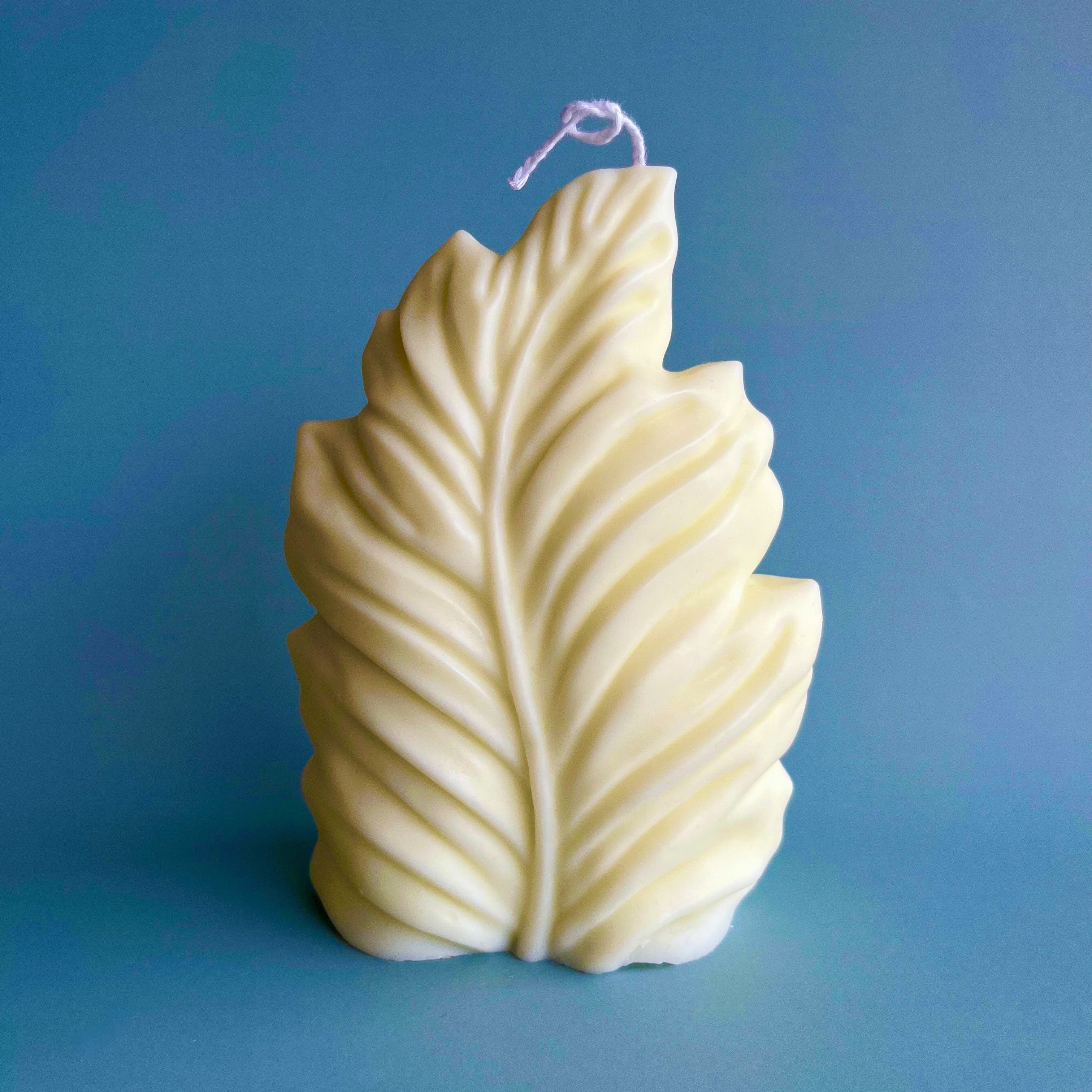 Déjate envolver por la belleza de la vela hoja, una pieza decorativa inspirada en la naturaleza. Su diseño detallado y su tamaño grande la convierten en un elemento cómodo que aporta calidez y estilo a cualquier espacio.