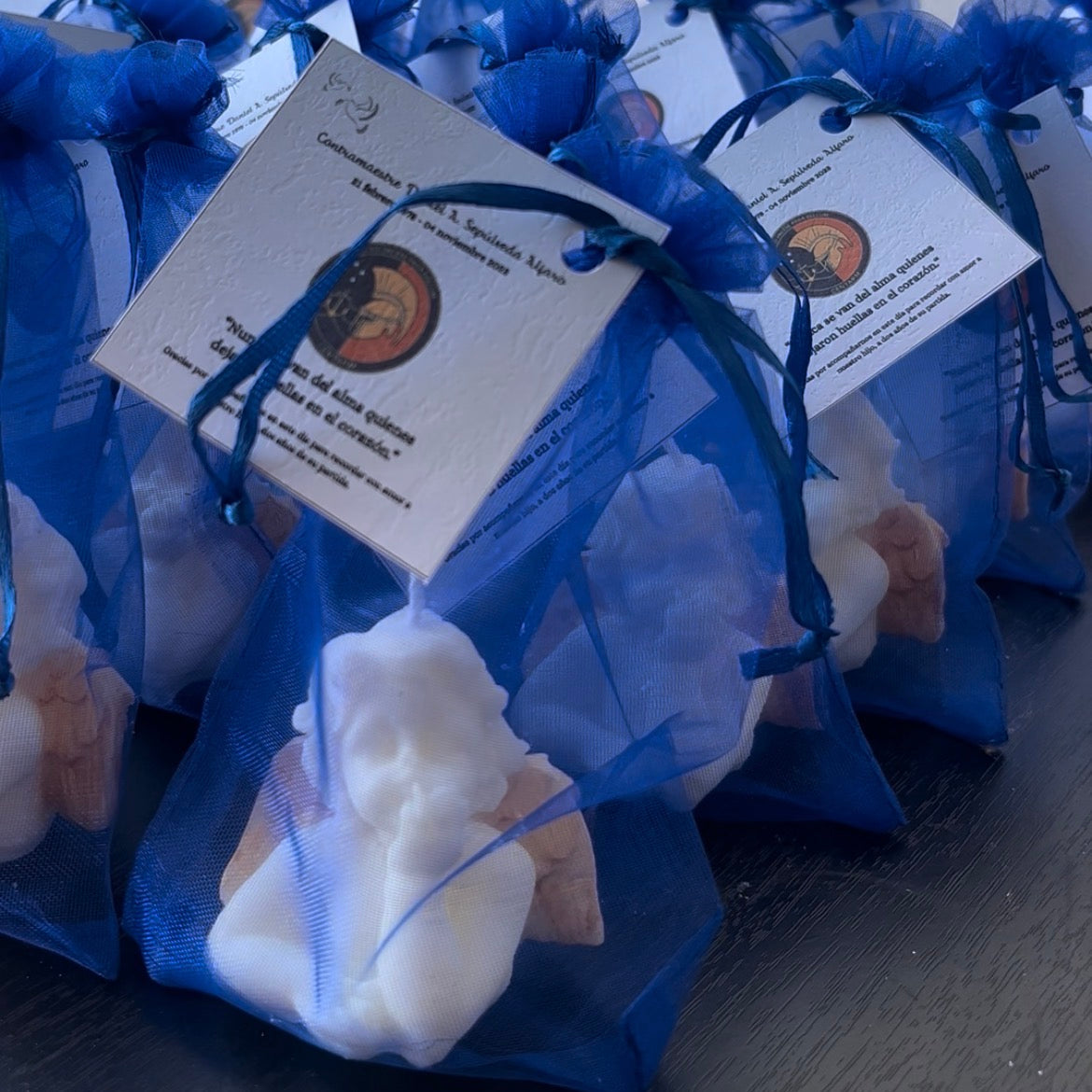 Una vela que captura la esencia de la ternura y la paz, como un susurro suave del cielo.