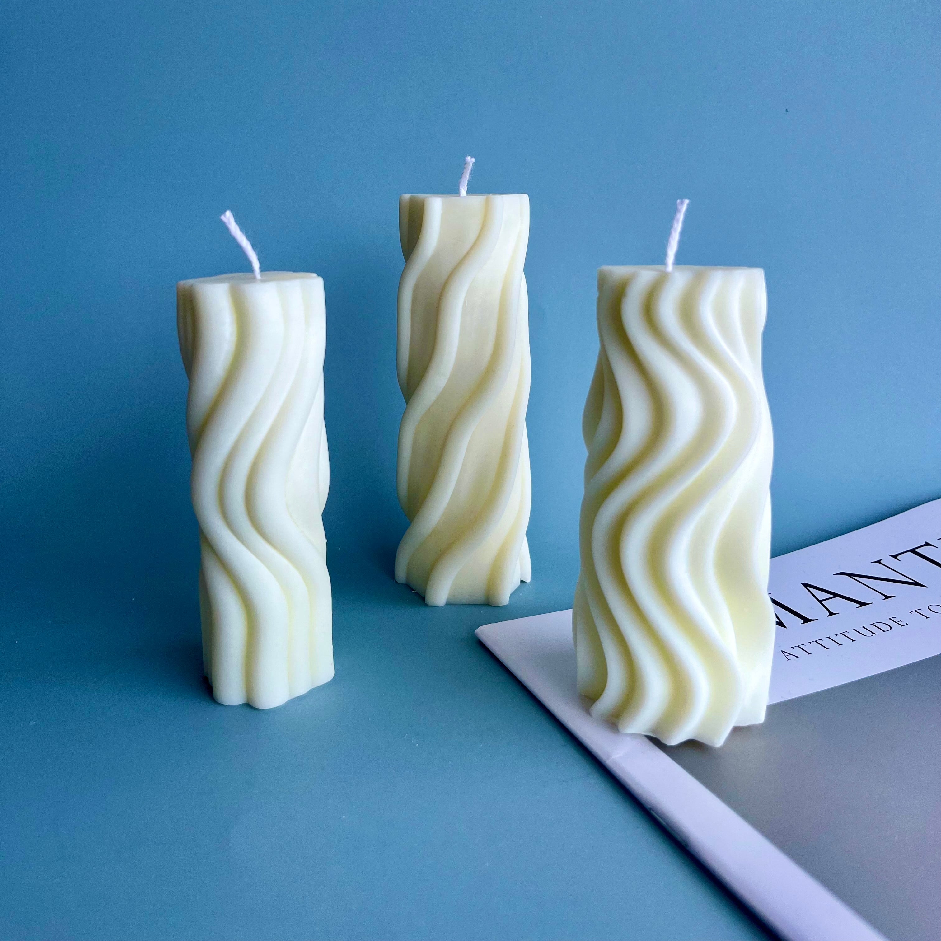 La silueta ondulada de cada vela crea un efecto visual dinámico y moderno, convirtiéndolas en un elemento decorativo único, incluso sin estar encendidas.